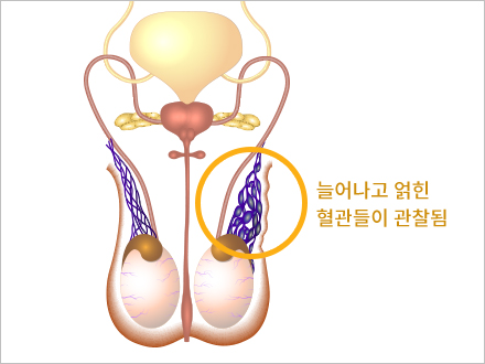 음낭 내에 있는 정맥의 혈관이 확장되어 음낭에 울퉁불퉁한 모습으로 확장된 혈관이 관찰되는 질환으로 좌측 음낭에서 유입되는 정맥이 신장정맥, 부신정맥과 합쳐져 대정맥으로 유입되므로 대부분 우측 보다 좌측에서 많이 발생하게 됩니다.