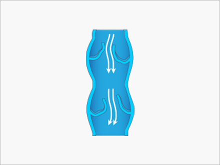 역류된 혈액으로 정맥이 늘어나고 구불구불해짐