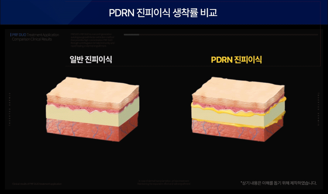 PDRN은 수술 부위에 진피와 함께 이식하여,