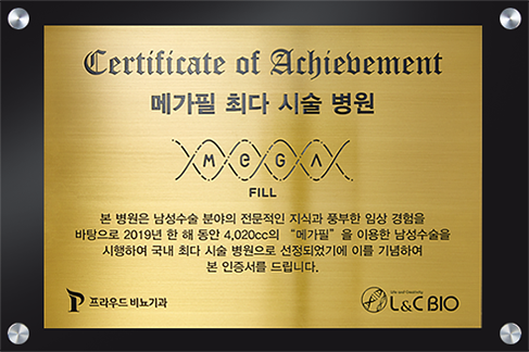 메가덤 최다 시술 병원 공식 인증서
